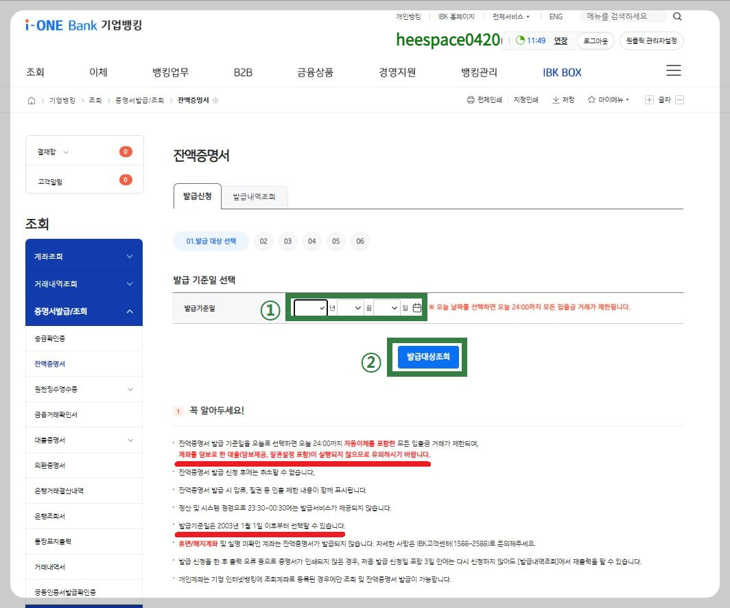 ■ 기업은행 잔액증명서 발급하는 방법